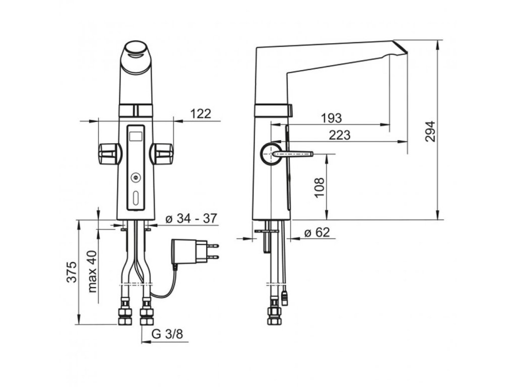 • teplota vody pre bezdotykovú funkciu nastaviteľná otočným krúžkom