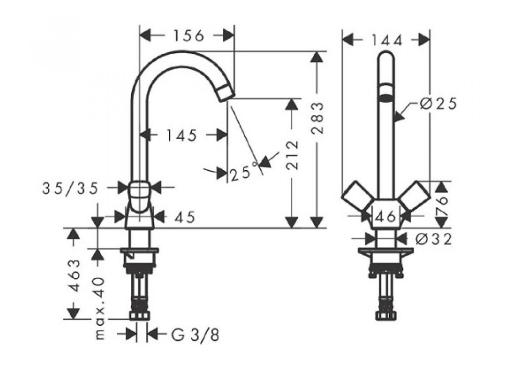 Klasická drezová stojanková vodovodná batéria s dvomi kohútmi.