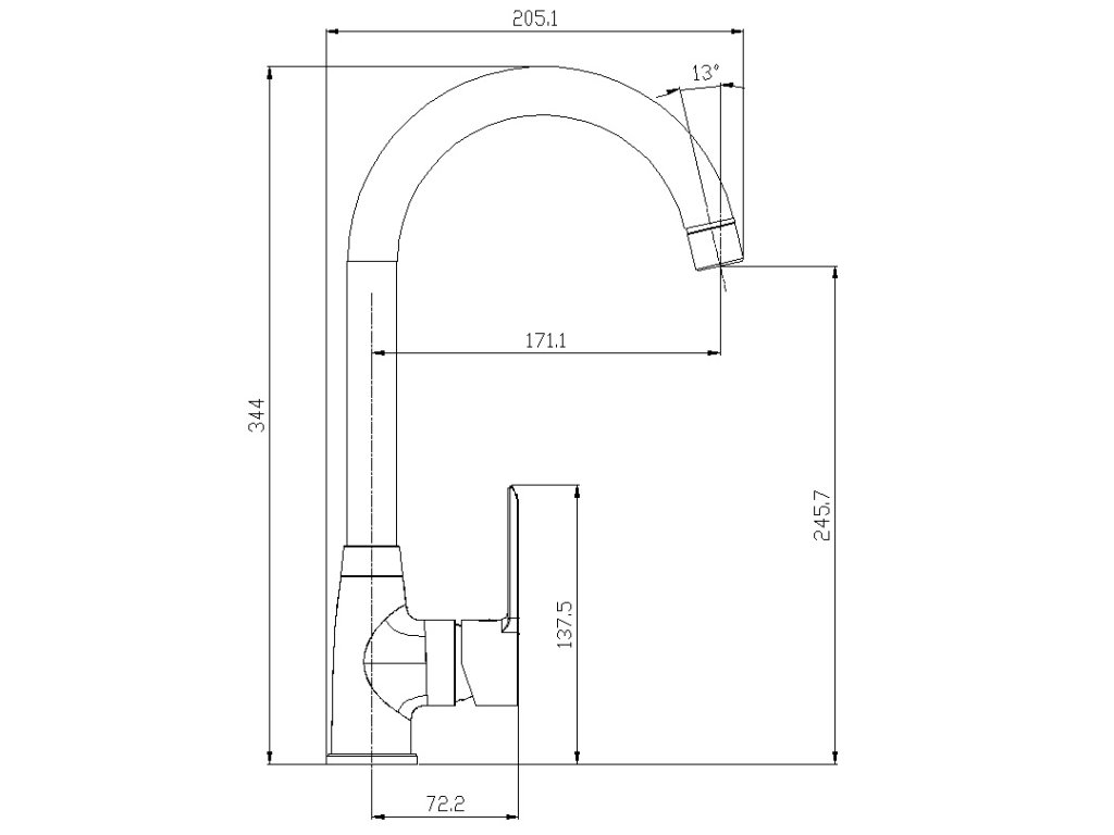 Páková drezová stojanková vodovodná batéria s horným liatym "U" výtokovým ramenom.