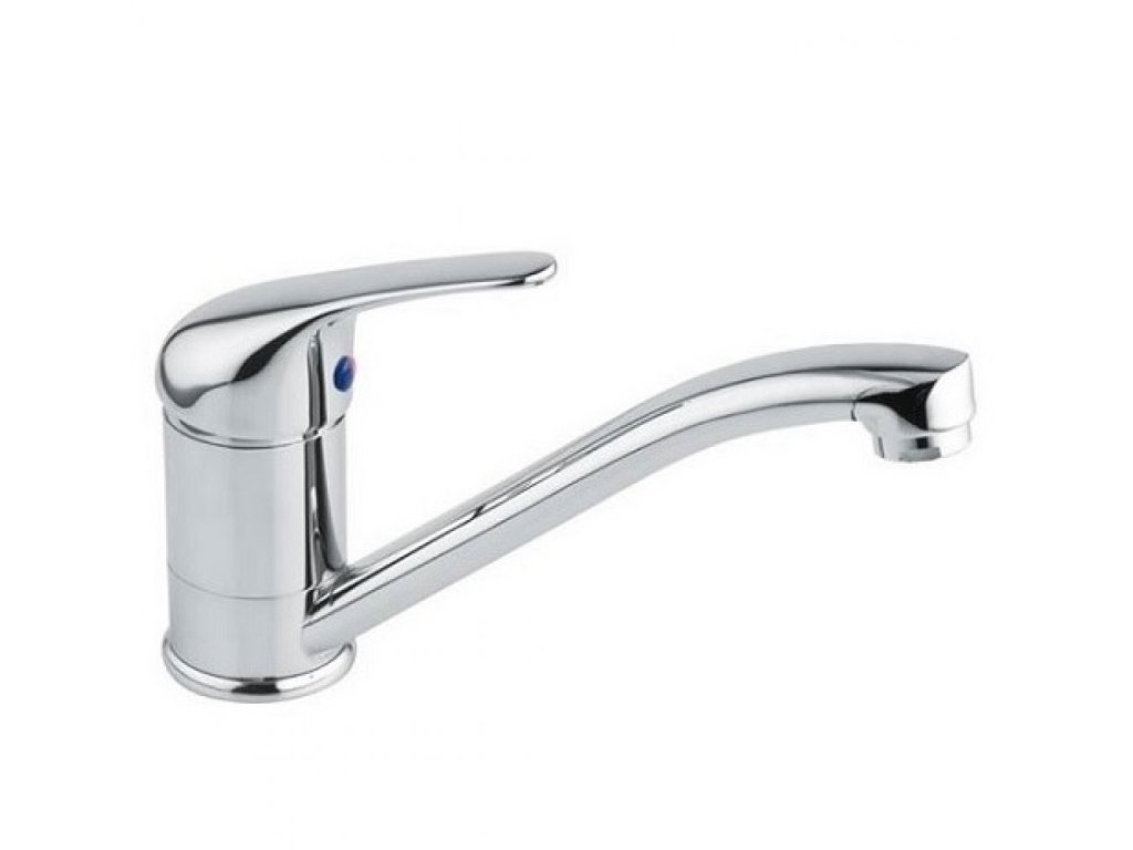 Páková drezová či umývadlová stojanková vodovodná batéria s krátkym otočným výtokovým ramenom.