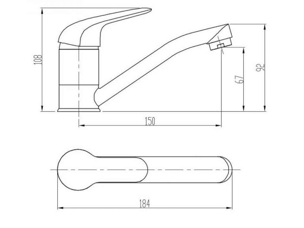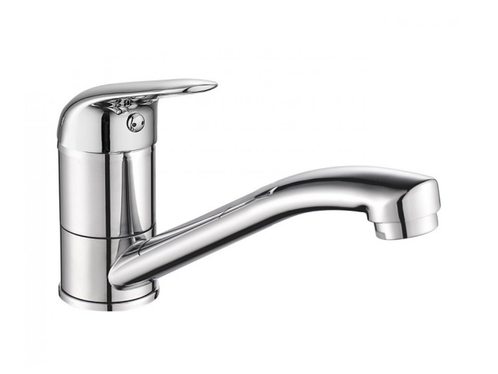Páková drezová alebo umývadlová stojanková vodovodná batéria s kratším otočným výtokovým ramienkom.