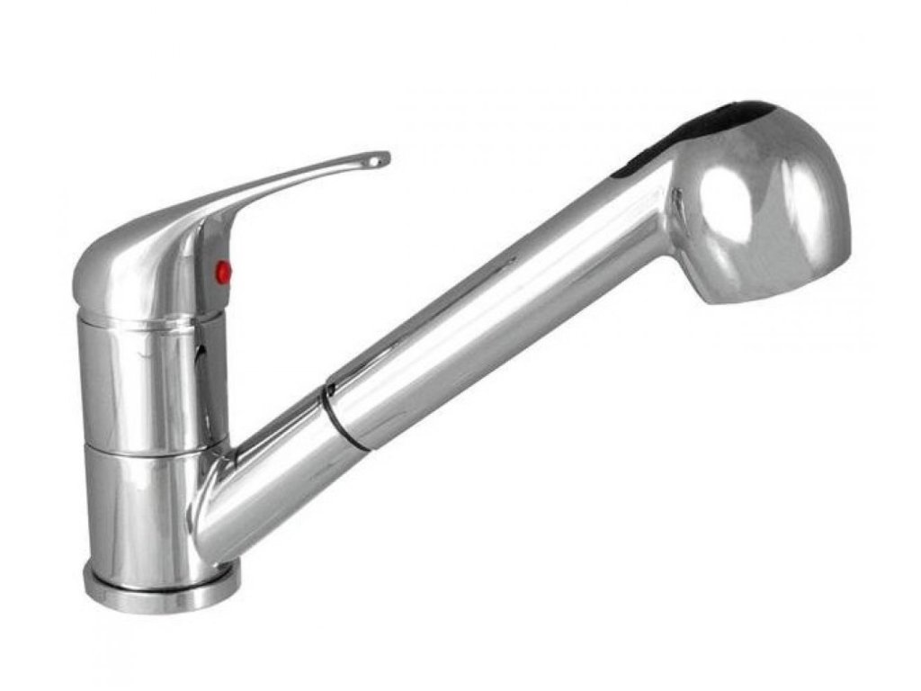 Páková drezová stojanková vodovodná batéria s výsuvnou sprchou. Výtokové rameno batérie je otočné a je ukončené výsuvnou sprchou s možnosťou prepnutia medzi dvomi režimami prúdu: perlátor/sprška.