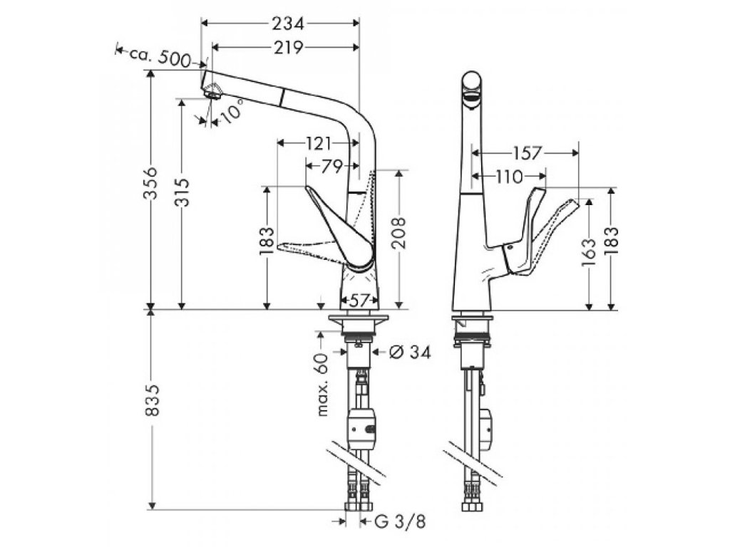 Komfortne vysoká drezová stojanková vodovodná batéria, ovládaná pomocou páky. Má praktickú vyťahovaciu spršku s laminárnym prúdom vody. Nábeh vody je pozvoľný, čo značne obmedzí rozstrekovanie vody.