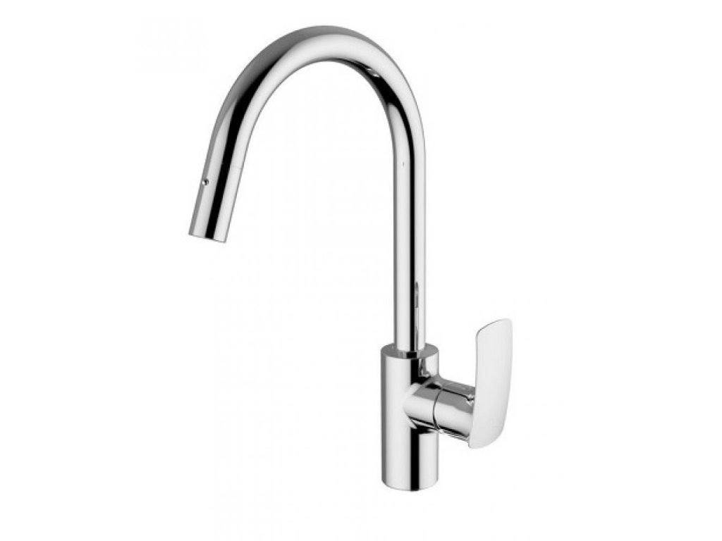 Páková drezová stojanková vodovodná batéria s výsuvnou sprchou.