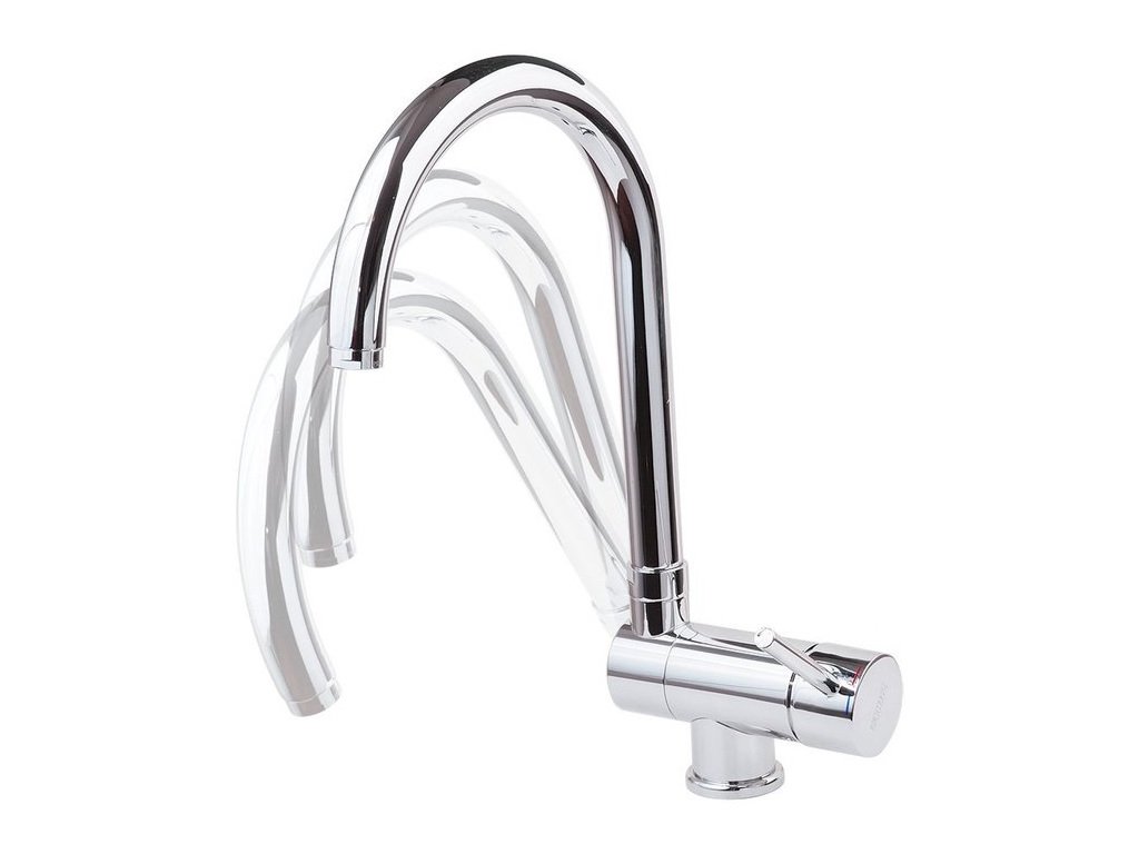 Výtokové ramienko tvaru "U" je nielen otočné do strán, ale aj sklopné dopredu a dozadu, vďaka ktorému je batéria Fresh vhodná k umiestneniu pred okno. Smerom dopredu je možné sklopiť ju až o 100°, smerom vzad o 10°.