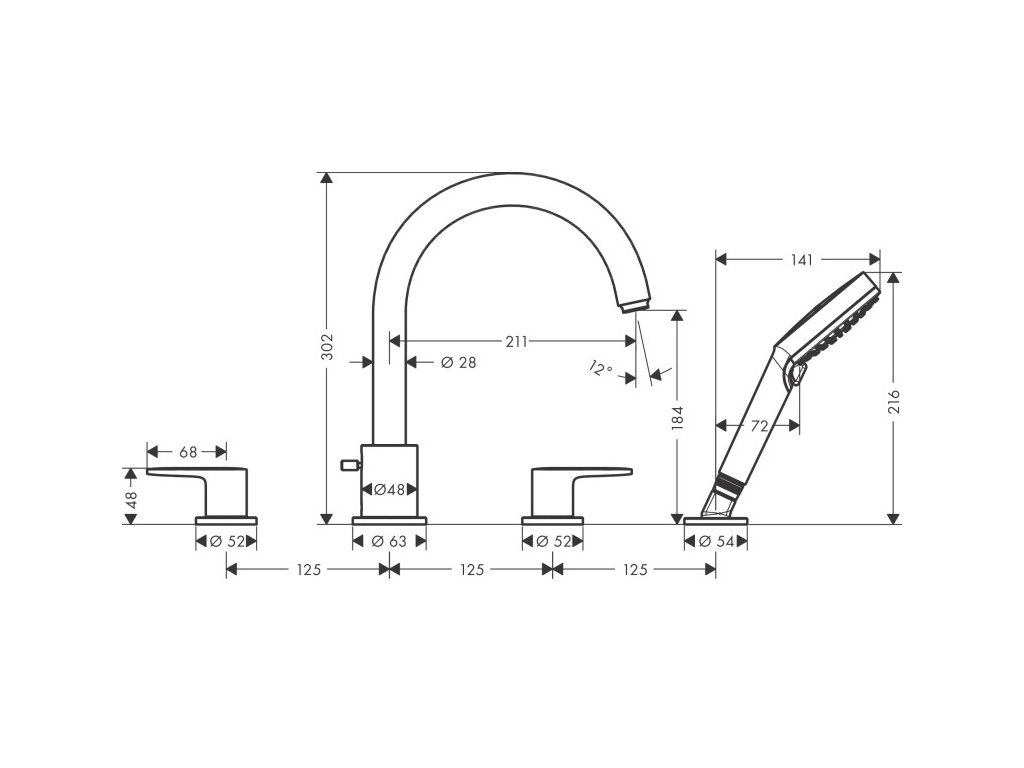 Obsah balenia: 4-otvorová batéria na okraj vane so sprchovým príslušenstvom, upevňovací materiál, montážny návod.