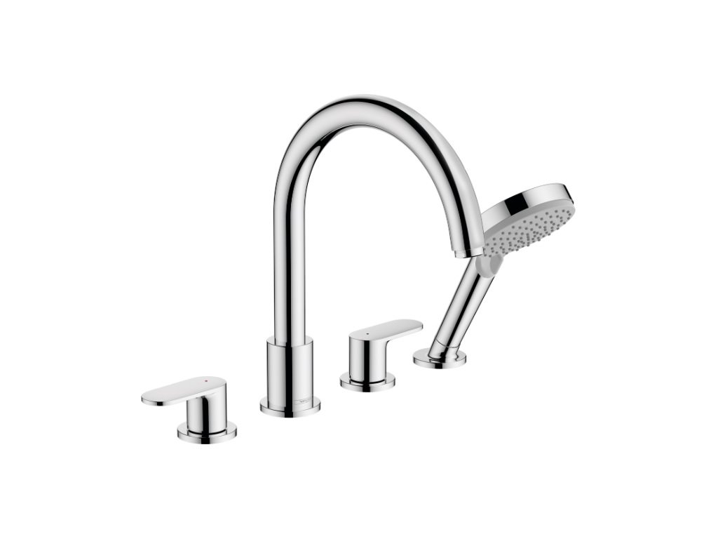 Vernis Blend je štýlová 4-otvorová vodovodná batéria značky HANSGROHE, s inštaláciou na okraj vane. Batéria je dodávaná so sprchovým príslušenstvom: ručnou sprškou s prúdmi Rain a IntenseRain a so sprchovou hadicou.