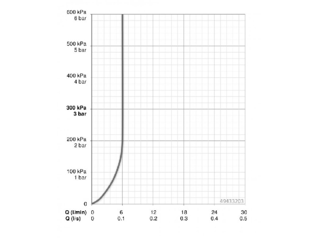 Prietok meraný pri hydraulickom tlaku 3 bar (s ovládačom prietoku): 6l/min.