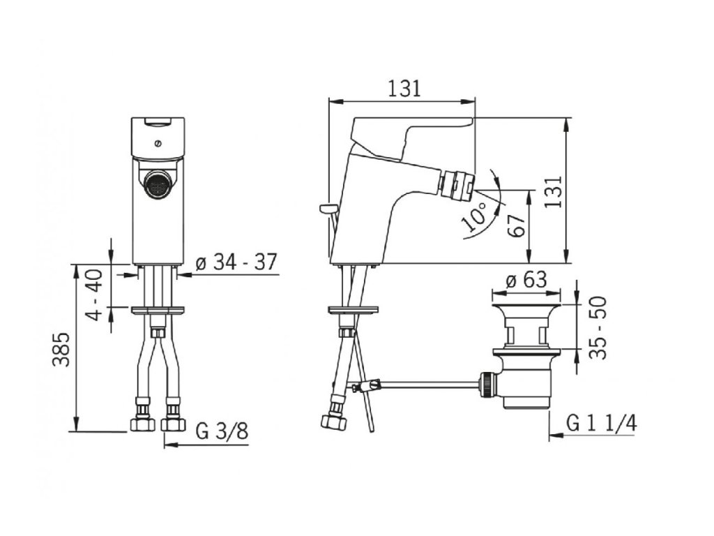 Bidetová batéria stojanková HANSAPRIMO s odtokovou súpravou, chróm