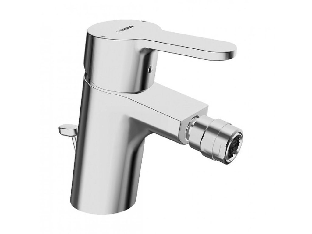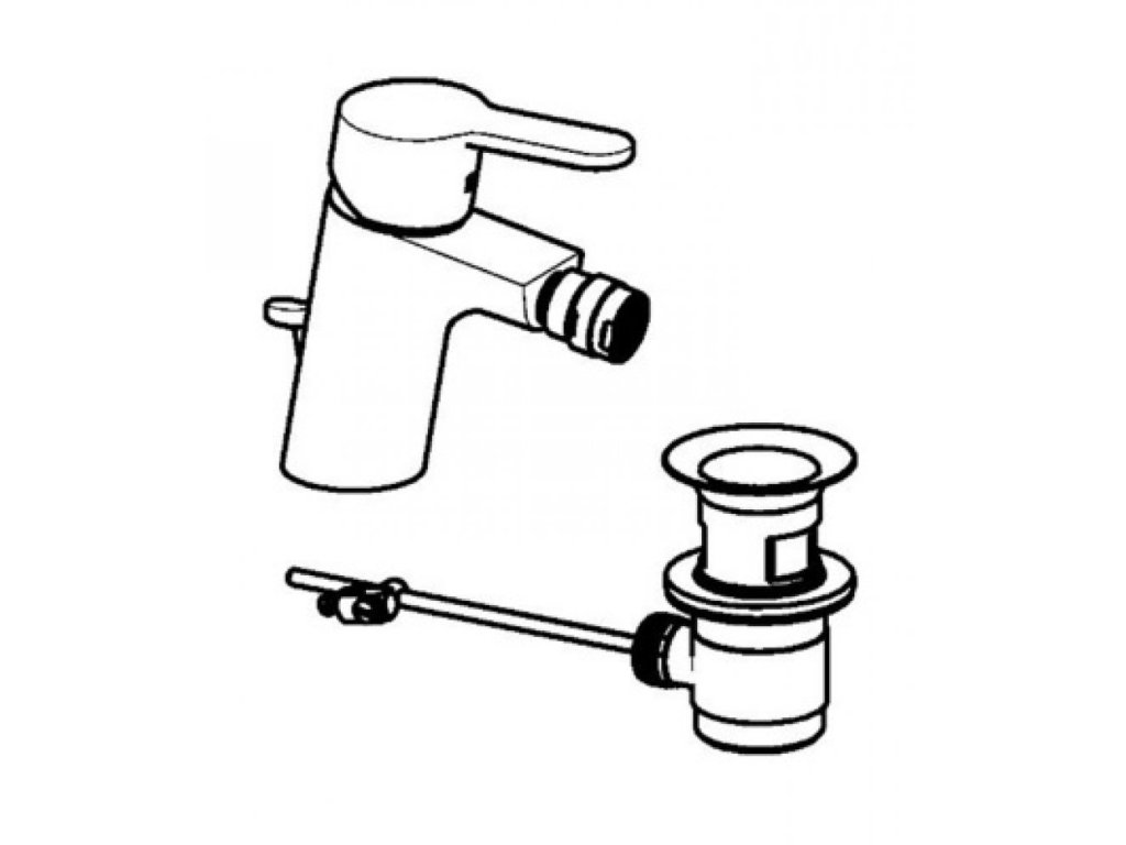 HANSAPRIMO - bidetová stojanková vodovodná batéria s odtokovou garnitúrou s tiahlom. Ovládaná je pomocou páky so symbolom teplej a studenej vody. Batéria má pevné výtokové ramienko.