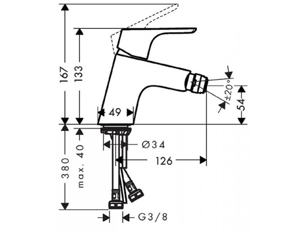 Páková bidetová stojanková vodovodná batéria s odtokovou súpravou Push-Open.