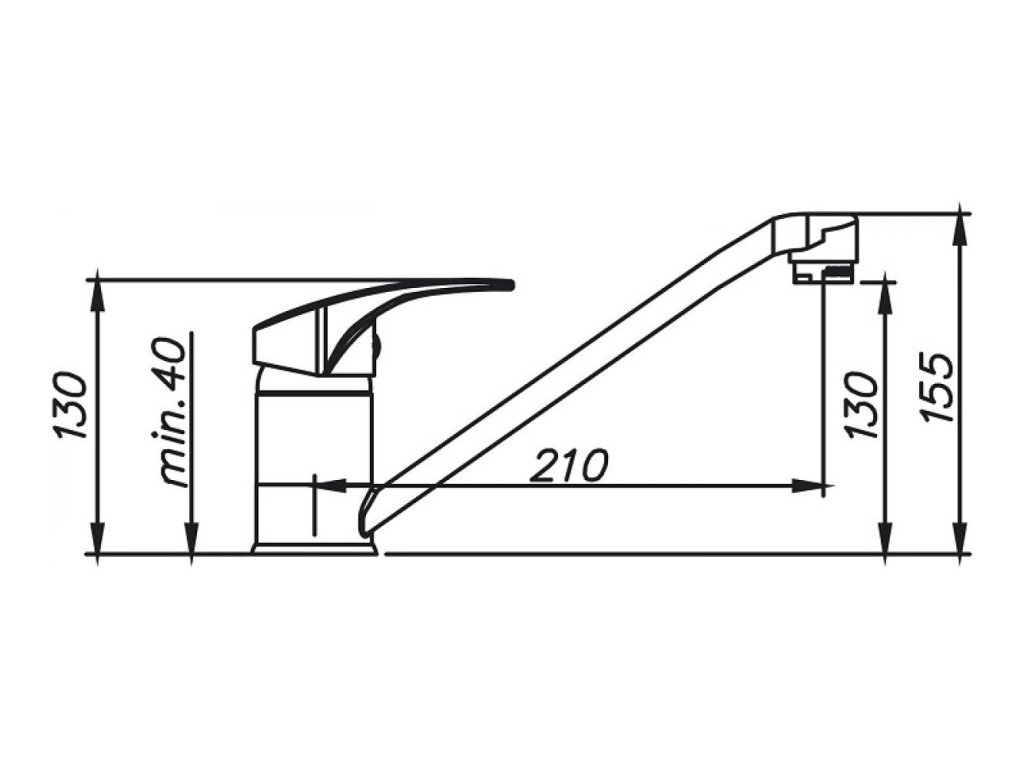 Drezová stojanková vodovodná batéria, ovládaná pomocou páky. S ramienkom otočným o 360°.