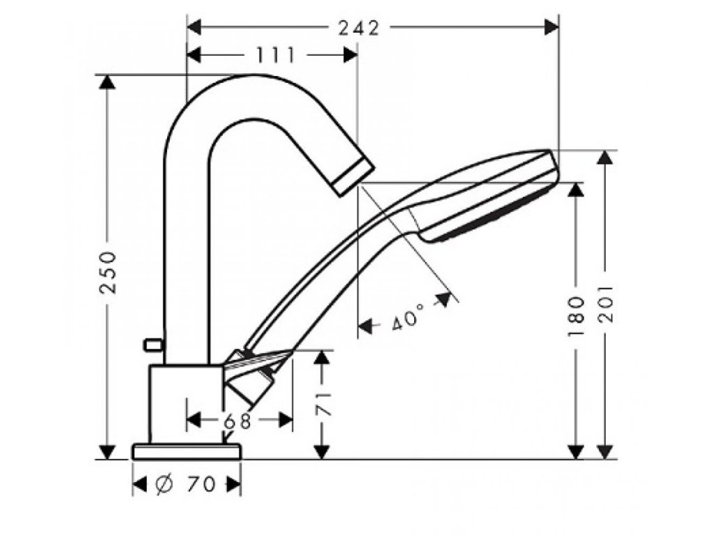 Trojotvorová páková vodovodná batéria s montážou na okraj vane. Dodávaná s 1-polohovou ručnou sprchou a sprchovým držiakom. Maximálna dĺžka vytiahnutia ručnej sprchy je 1100mm.