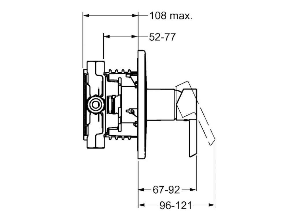 HANSAPINTO - sprchová podomietková batéria určená pre jedno odberné miesto. Ovládaná je pomocou páky so symbolom teplej a studenej vody. Rozeta je okrúhleho tvaru.