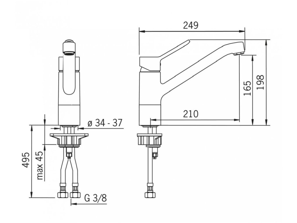 Pripojenie pomocou flexibilných pripojovacích hadičiek.