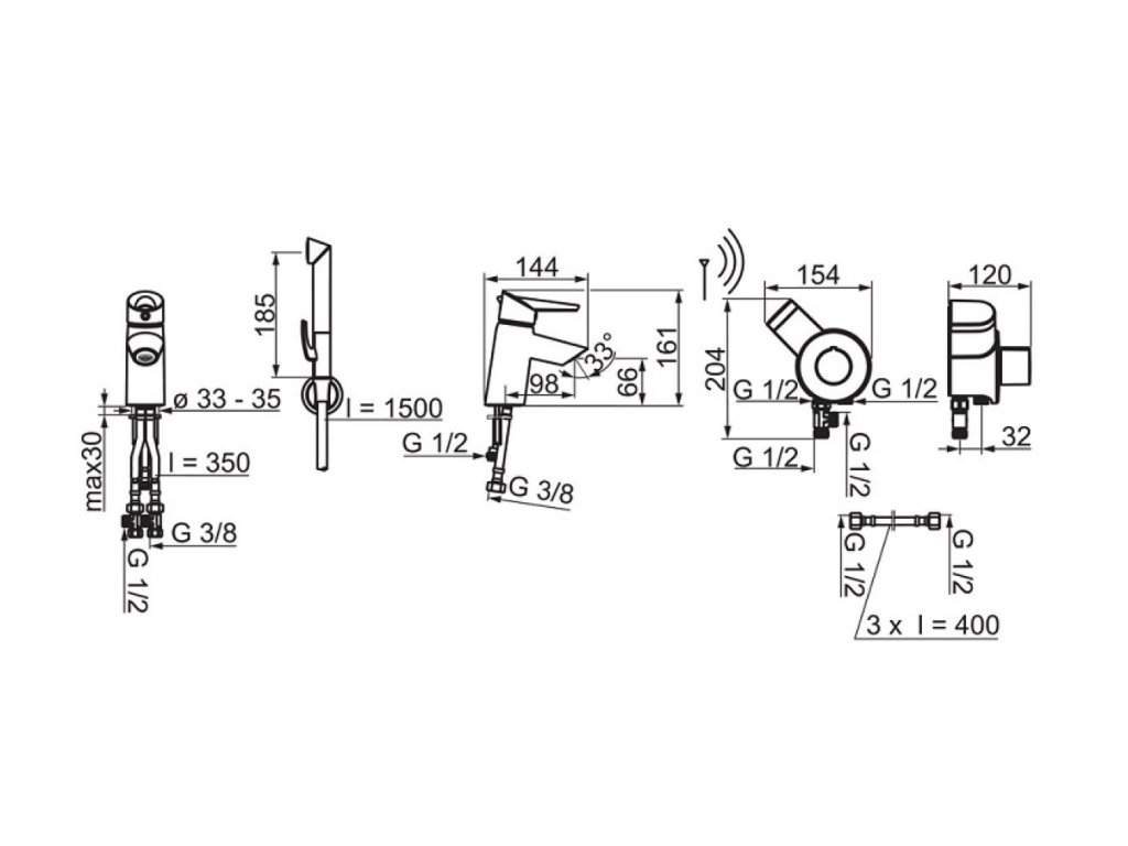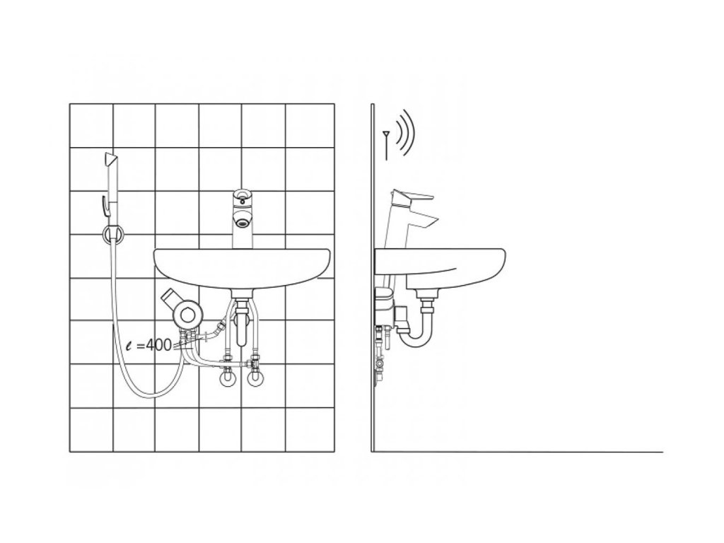 HANSAFIT - umývadlová stojanková vodovodná batéria s diaľkovo ovládanou funkčnou ručnou sprchou Smart Bidetta so sprchovou hadicou dĺžky 1500mm a s držiakom ručnej sprchy. S externou riadiacou jednotkou.
