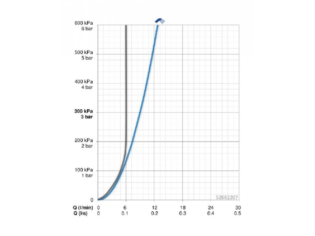 Prietok (s ovládačom prietoku) meraný pri hydraulickom tlaku 3bar: 6l/min.