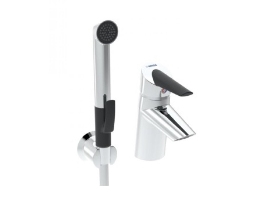 HANSAFIT - umývadlová stojanková vodovodná batéria s ručnou sprchou Bidetta, so sprchovou hadicou dĺžky 1500mm a s držiakom ručnej sprchy.