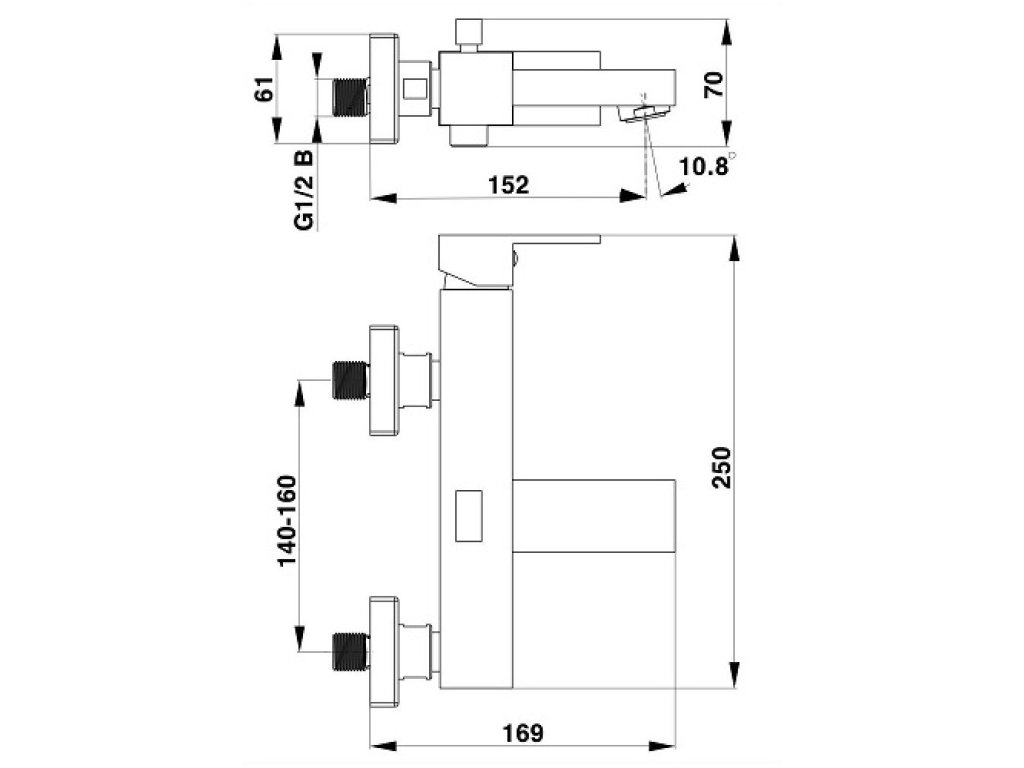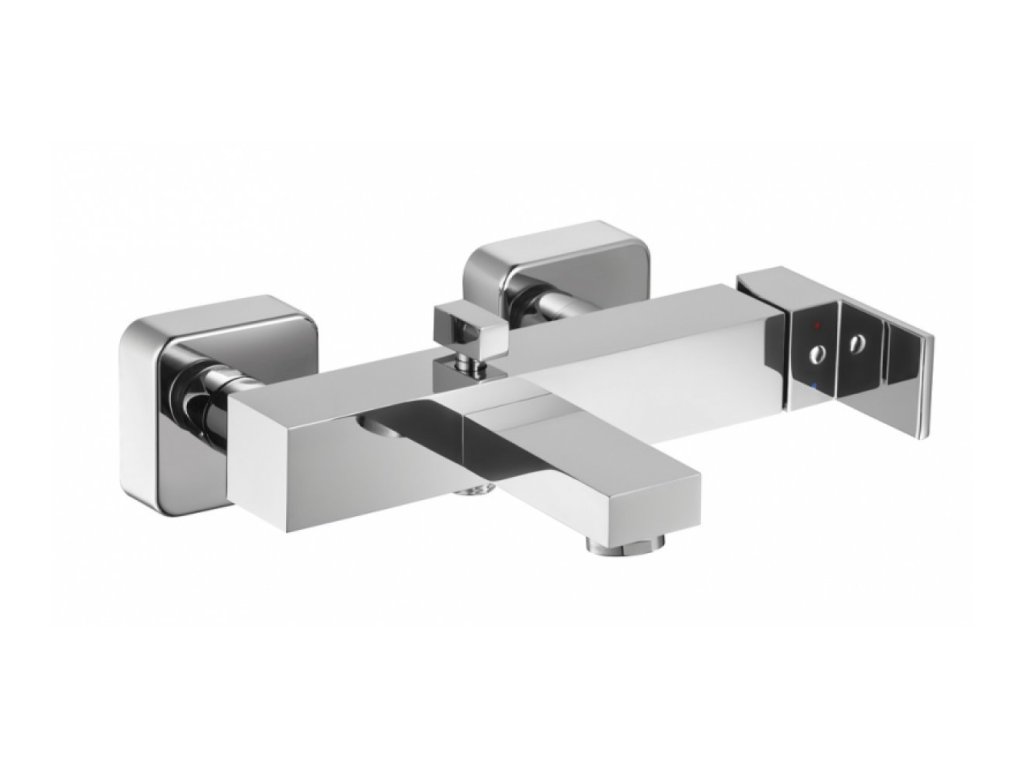 Páková vaňová stenová vodovodná batéria hranatých tvarov. S automatickým prepínačom vaňa/sprcha. Dodávané bez sprchového príslušenstva.