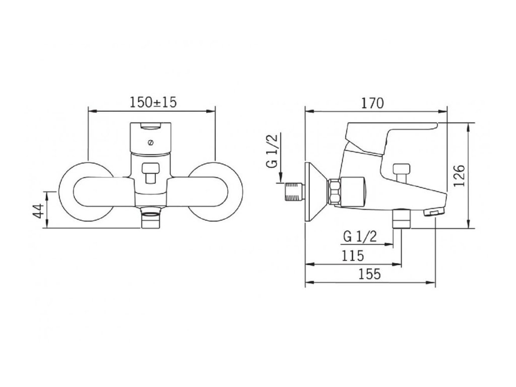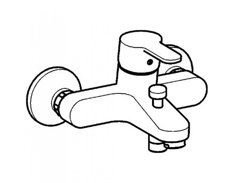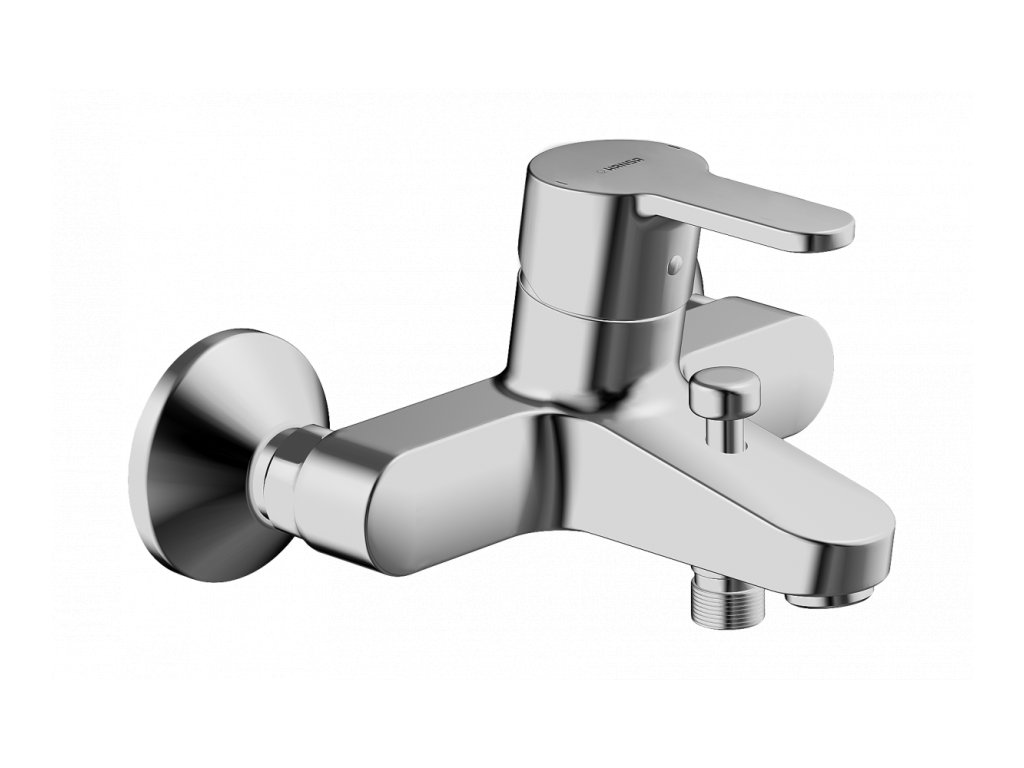 HANSAPRIMO - páková vaňová vodovodná batéria s nástennou montážou. S ťažným prepínačom s automatickým resetom.