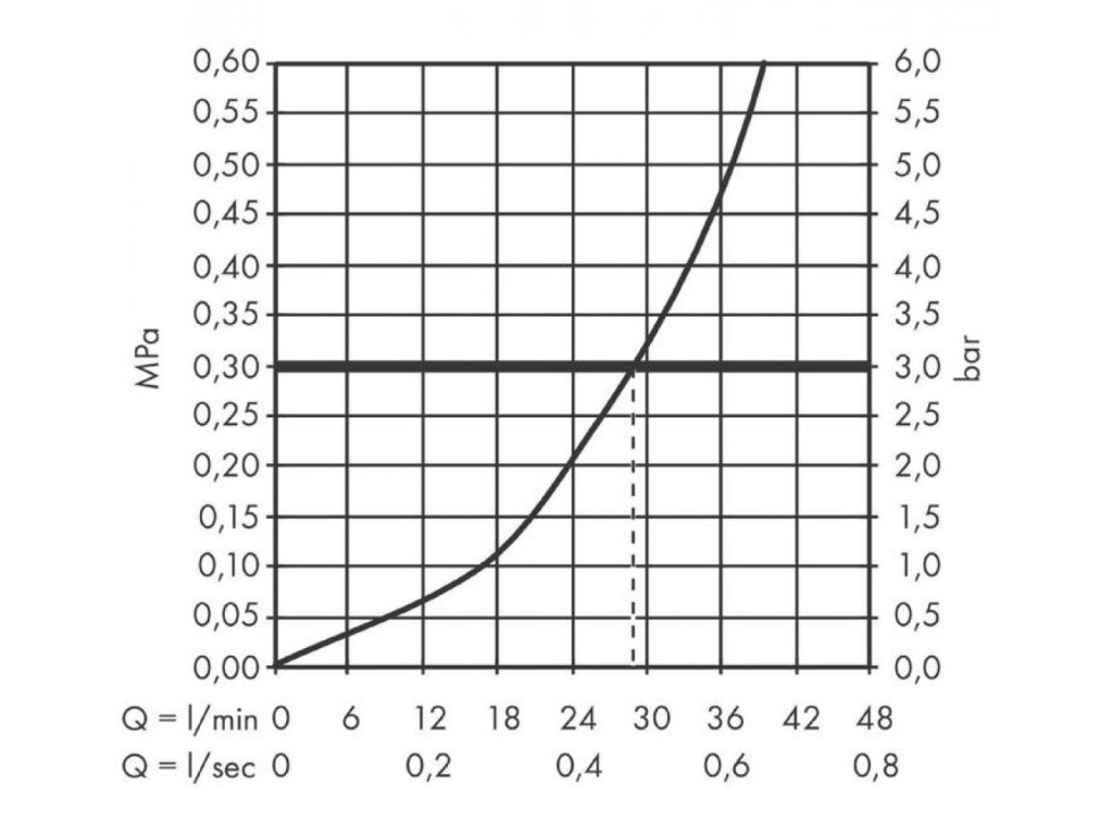 Maximálny prietok pri 0,3 MPa: 29,3 l/min.