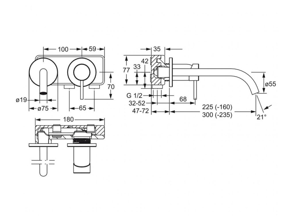 Umývadlová batéria pod omietku HANSAPUBLIC, 2-otvorová, chróm