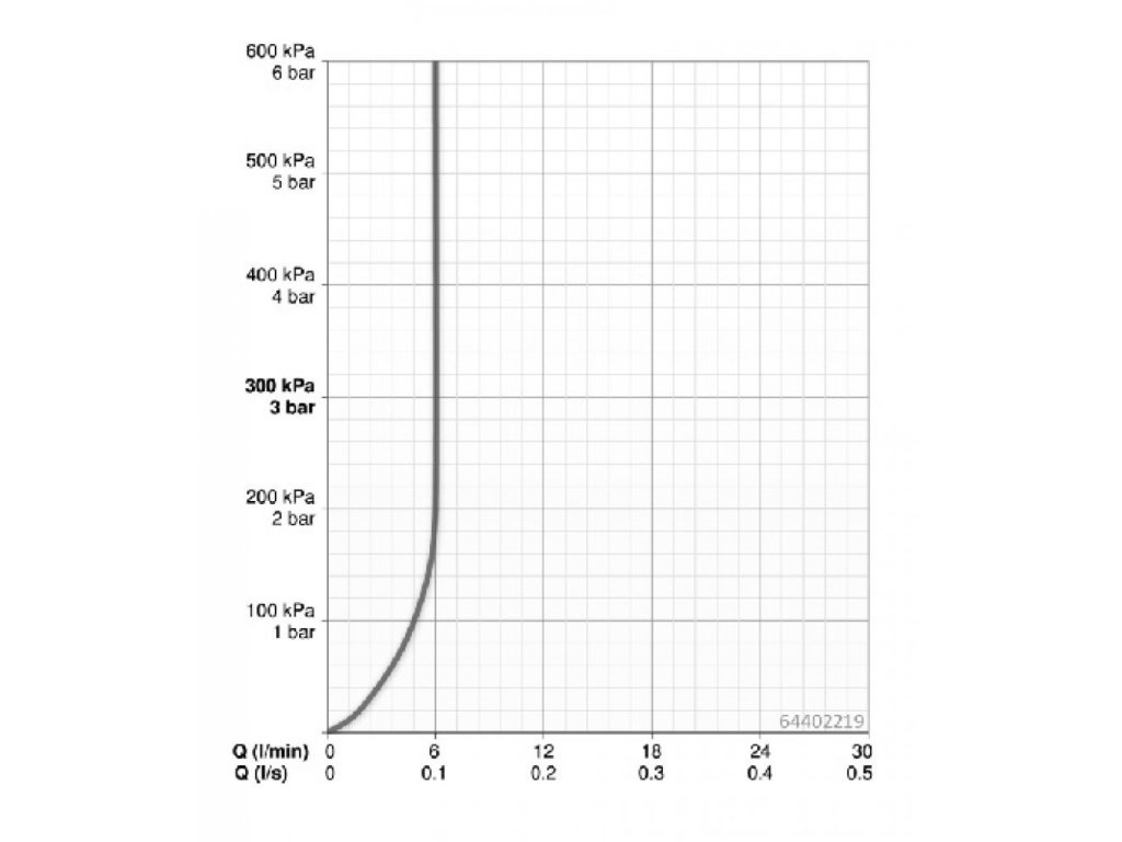 Prietok meraný pri hydraulickom tlaku 3 bar (s ovládačom prietoku): 6l/min.
