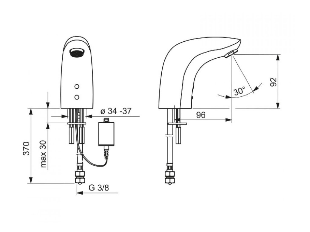 HANSAELECTRA - umývadlová senzorová batéria na studenú alebo predzmiešanú vodu. Batéria má pevné liate výtokové ramienko zakončené CASCADE® - aerátorom.
