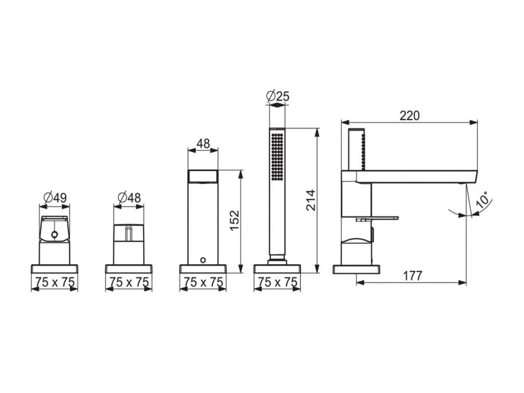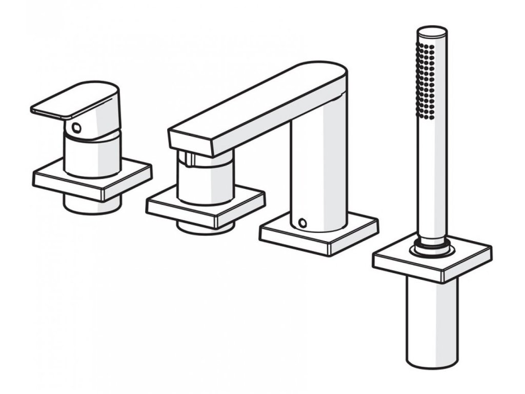 HANSASTELA - vaňová a sprchová podomietková 4-otvorová batéria na okraj vane. So štvorcovou rozetou. Ovládaná pomocou páky so symbolom teplej a studenej vody.
