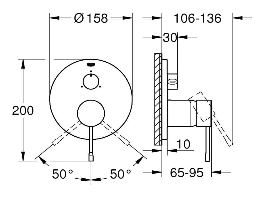 Montáž na podomietkové teleso. Nie je súčasťou dodávky, montážne teleso je potrebné doobjednať - GROHE Rapido SmartBox - obj. kód. 35600000.