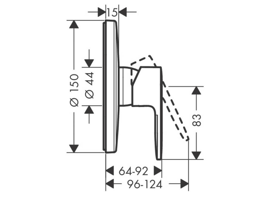Vrchný diel pre sprchovú podomietkovú batériu VERNIS BLEND značky Hansgrohe, pre 1 odberné miesto. S okrúhlou rozetou.