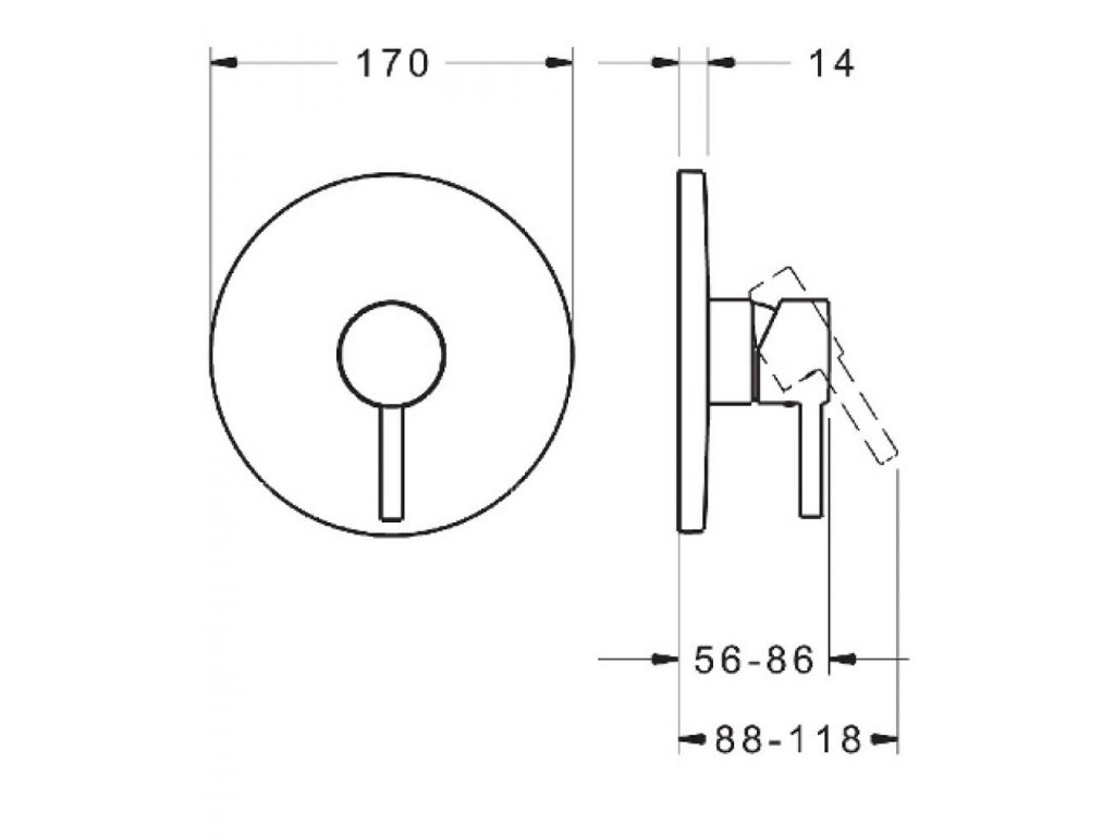 HANSAPINTO - sprchová podomietková batéria, určená pre jedno odberné miesto. Batéria má okrúhlu rozetu a PIN-tyčinkovú páku so symbolom studenej a teplej vody.