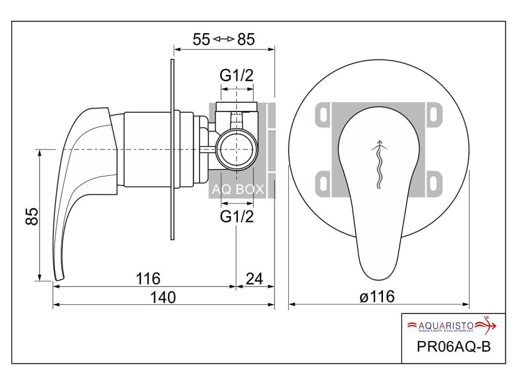 Páková sprchová podomietková vodovodná batéria pre 1 odberné miesto. Batéria je dodávaná s AQ-boxom (podomietkové teleso v plastovom boxe).