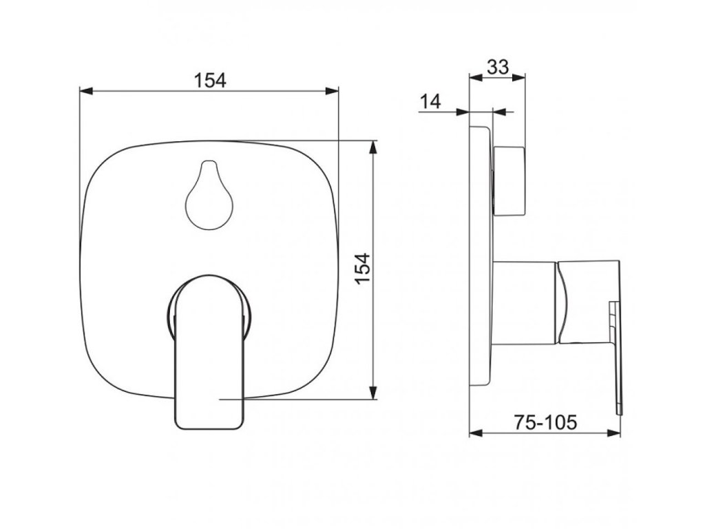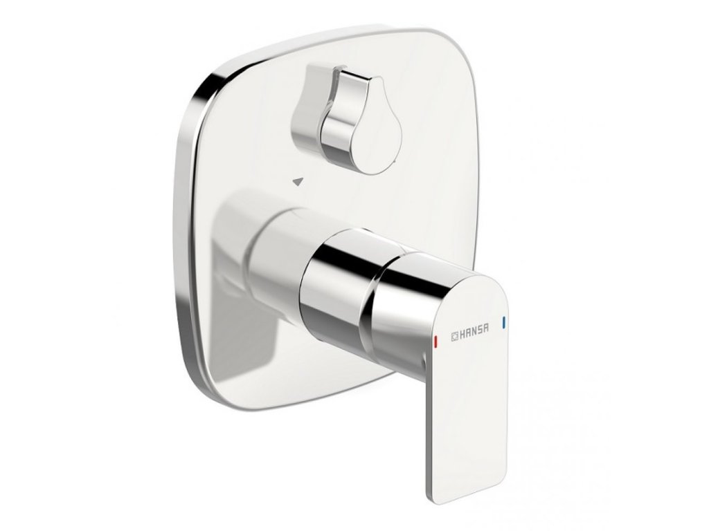 HANSASTELA - sprchová podomietková batéria, určená pre dve odberné miesta. So soft edge rozetou, s pákou so symbolom teplej a studenej vody a s otočným prepínačom.