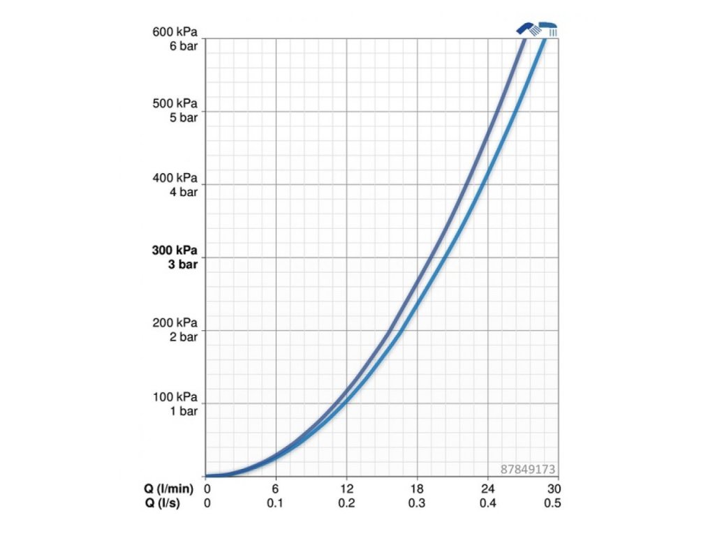 Prietok meraný pri hydraulickom tlaku 3 bar: 20,4 l/19,2 l/min.