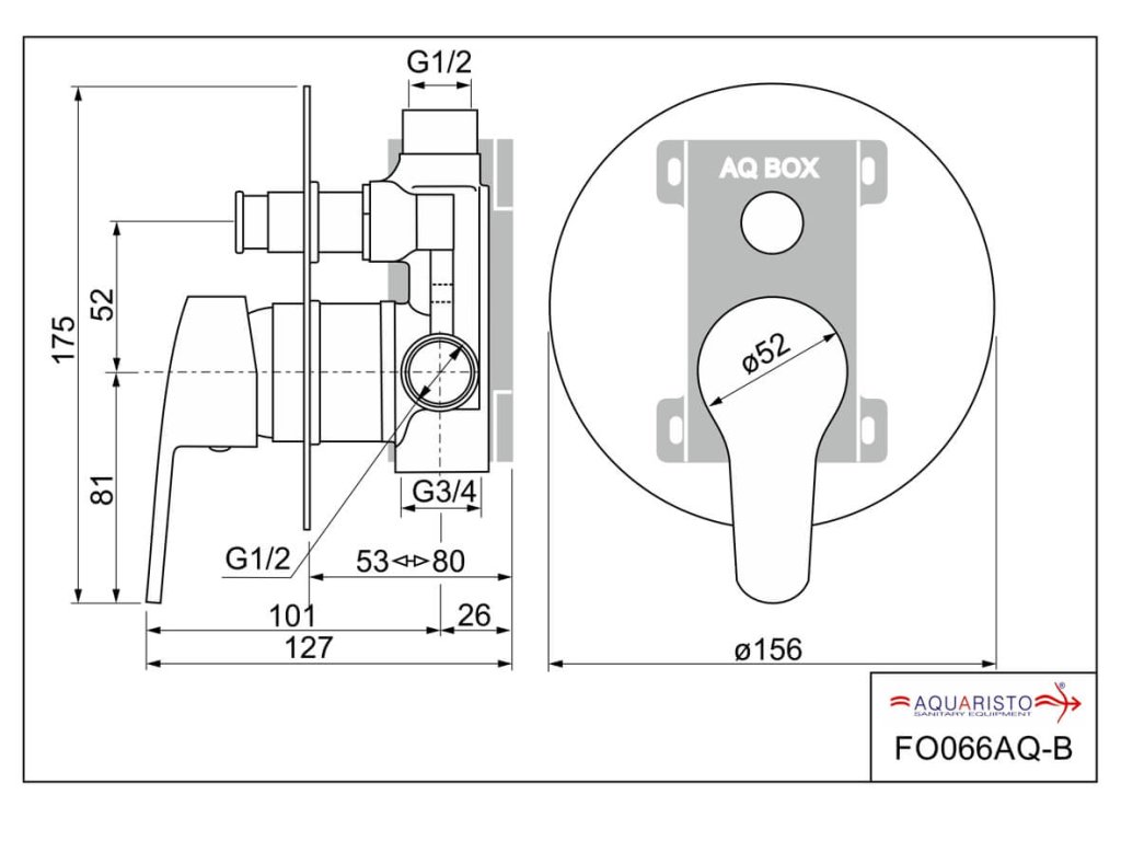 áková sprchová podomietková vodovodná batéria pre 2 odberné miesta. Batéria je dodávaná s AQ-boxom (podomietkové teleso v plastovom boxe).