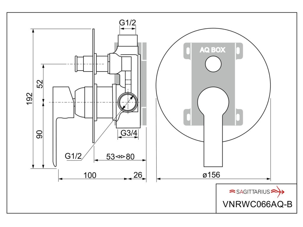 Páková sprchová podomietková vodovodná batéria pre 2 odberné miesta. Batéria je dodávaná s AQ-boxom (podomietkové teleso v plastovom boxe).
