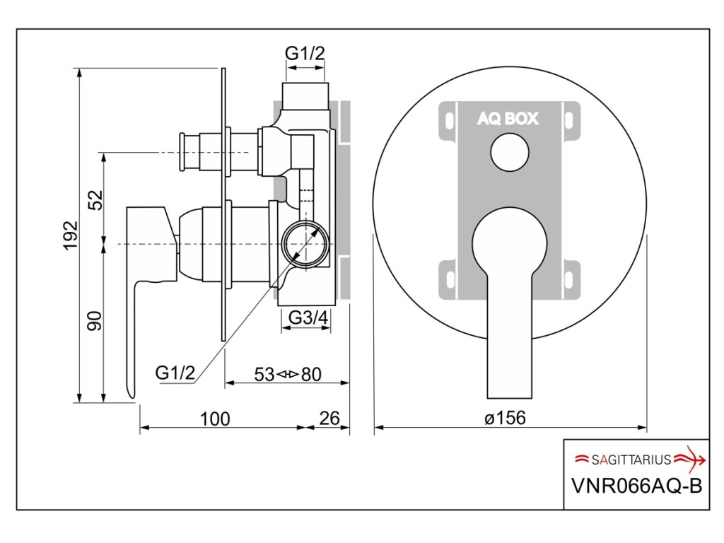 Páková sprchová podomietková vodovodná batéria pre 2 odberné miesta. Batéria je dodávaná s AQ-boxom (podomietkové teleso v plastovom boxe).