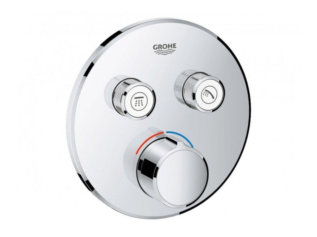 GROHE SmartControl tlačidlo ON-OFF - technológia umožňujúca prepínať medzi požadovanými zdrojmi prúdu, regulovať objem vody od EcoJoy po plný prúd FullFLow a regulovať teplotu pomocou otočných tlačidiel.