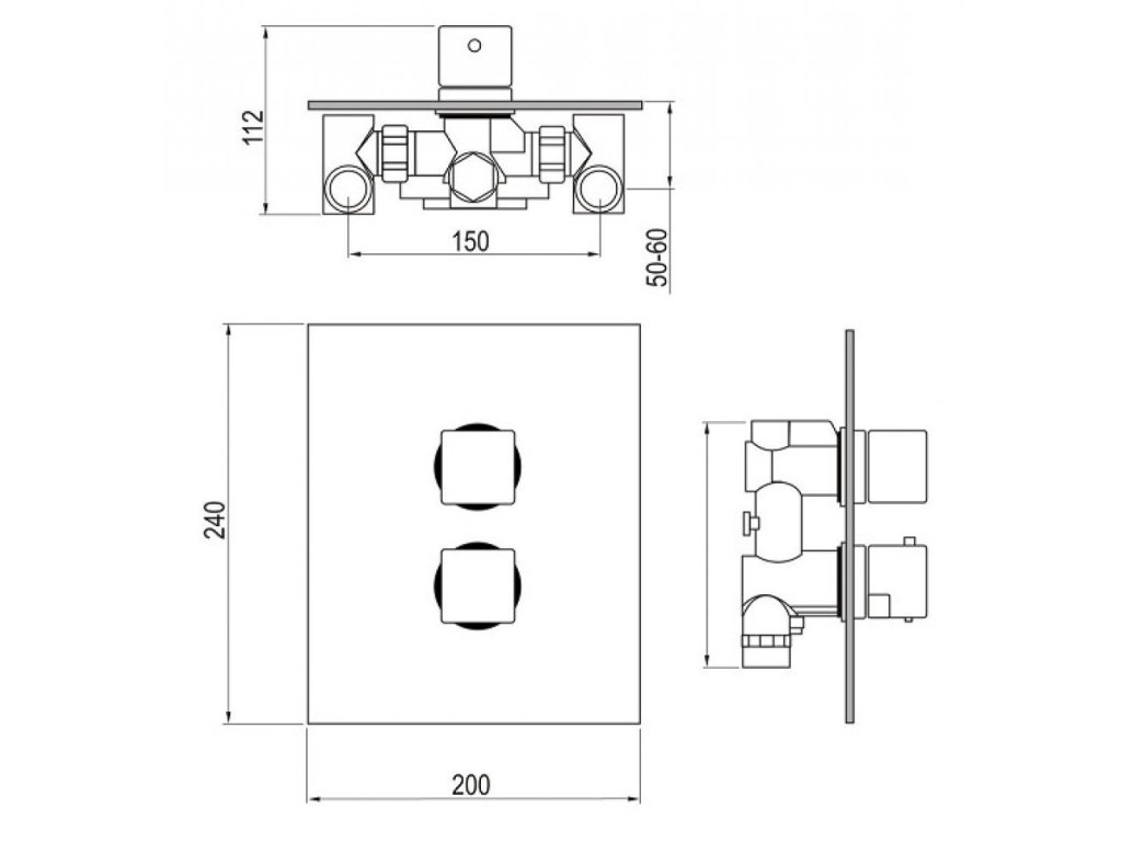 Páková sprchová podomietková termostatická vodovodná batéria pre 1 odberné miesto. Obsahom balenia je podomietková aj nadomietková čast batérie.