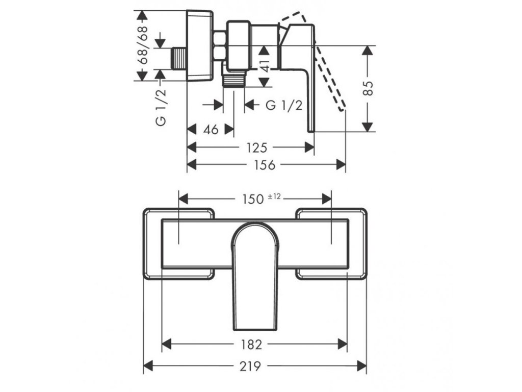 Sprchová stenová vodovodná batéria VERNIS SHAPE značky Hansgrohe. Bez sprchového príslušenstva.