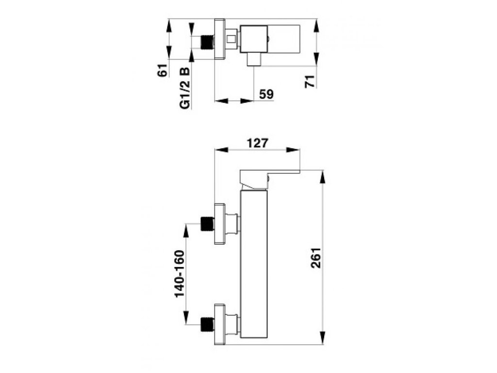 Páková sprchová stenová vodovodná batéria, dodávaná bez sprchového príslušenstva. Súčasťou balenia sú etážky aj krycie ružice.