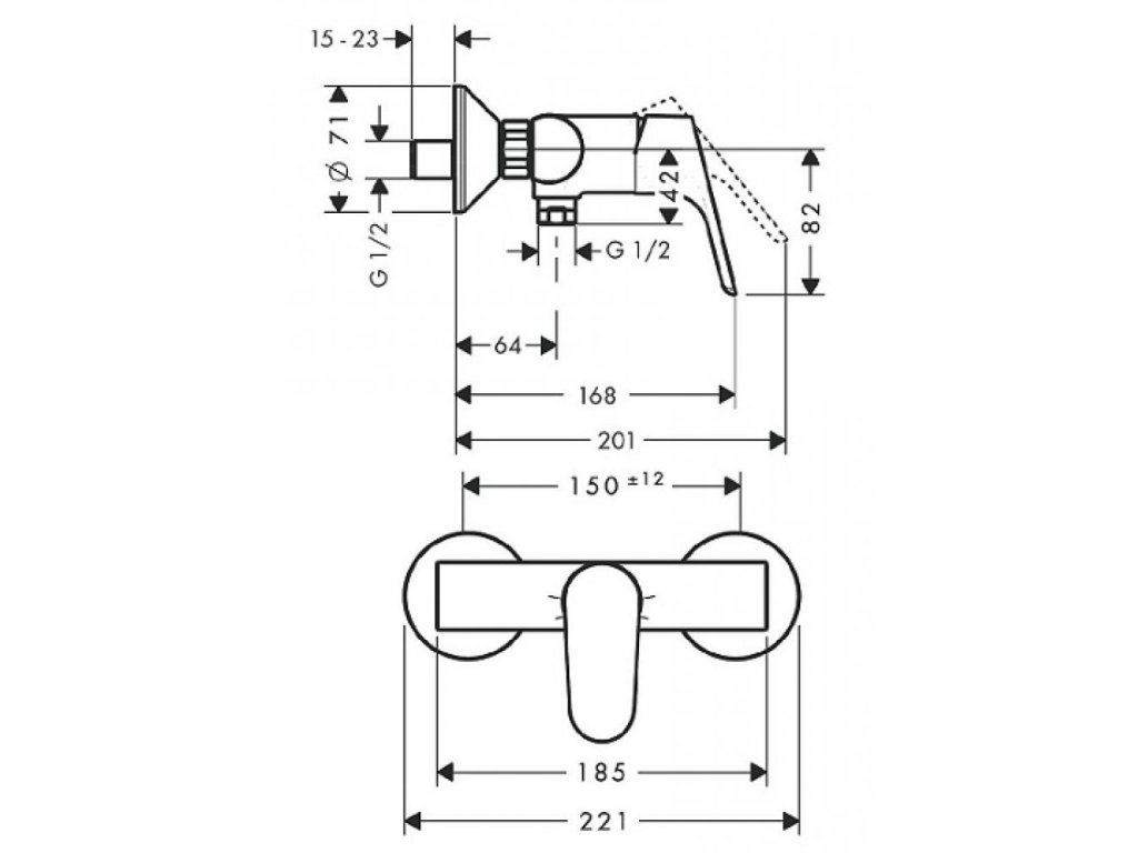 Páková sprchová nástenná vodovodná batéria, dodávaná bez sprchového príslušenstva.