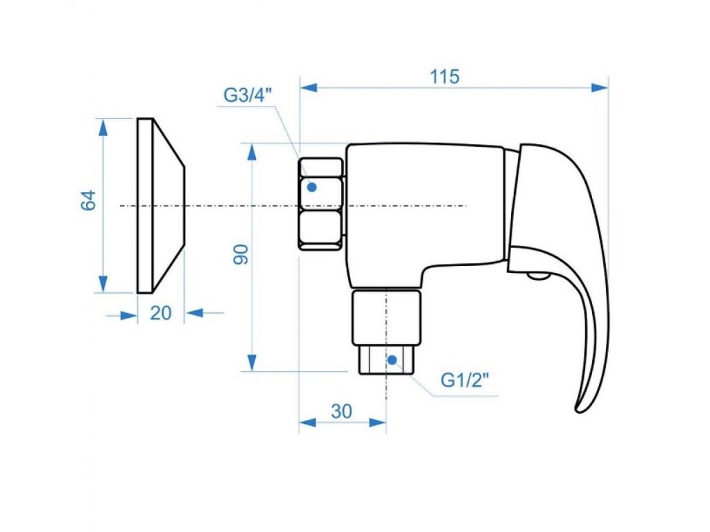 Páková sprchová stenová vodovodná batéria bez príslušenstva.
