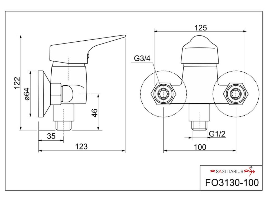 Sprchová batéria nástenná FORUM, rozstup 100mm, chróm