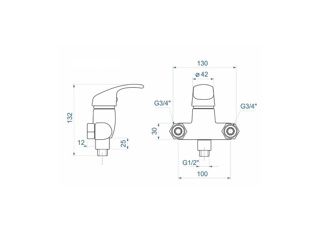 Sprchová batéria nástenná LUNA, rozstup 100mm, chróm