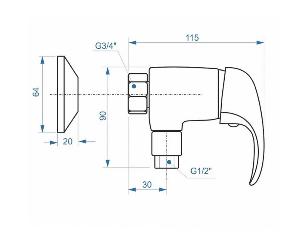 Páková sprchová stenová vodovodná batéria bez príslušenstva.Rozstup batérie je 100mm.