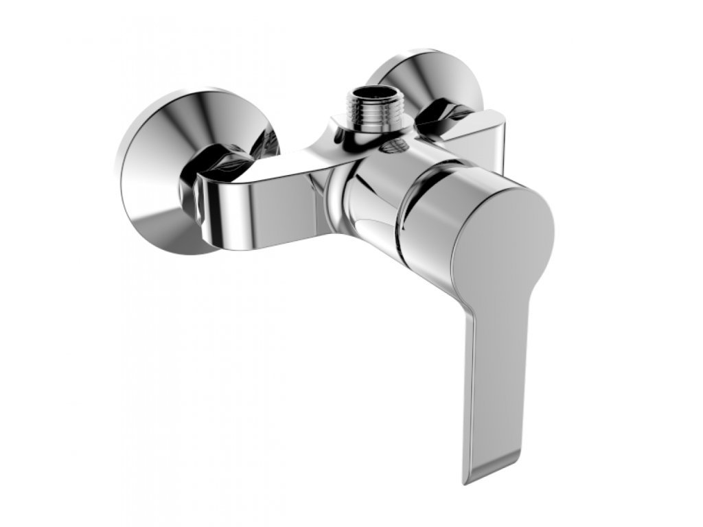 Páková sprchová stenová vodovodná batéria s horným vývodom, dodávaná bez príslušenstva.