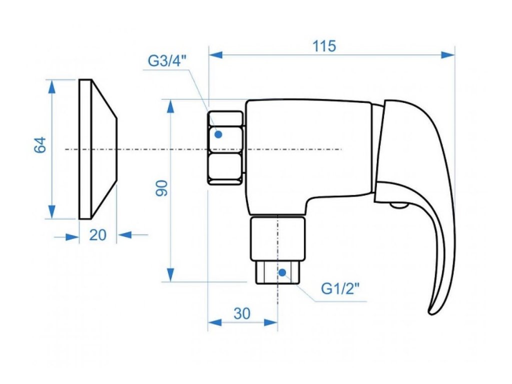 Páková sprchová stenová vodovodná batéria bez príslušenstva.Rozstup batérie je 150mm.