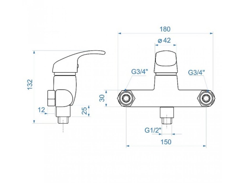Páková sprchová stenová vodovodná batéria bez príslušenstva.Rozstup batérie je 150mm.